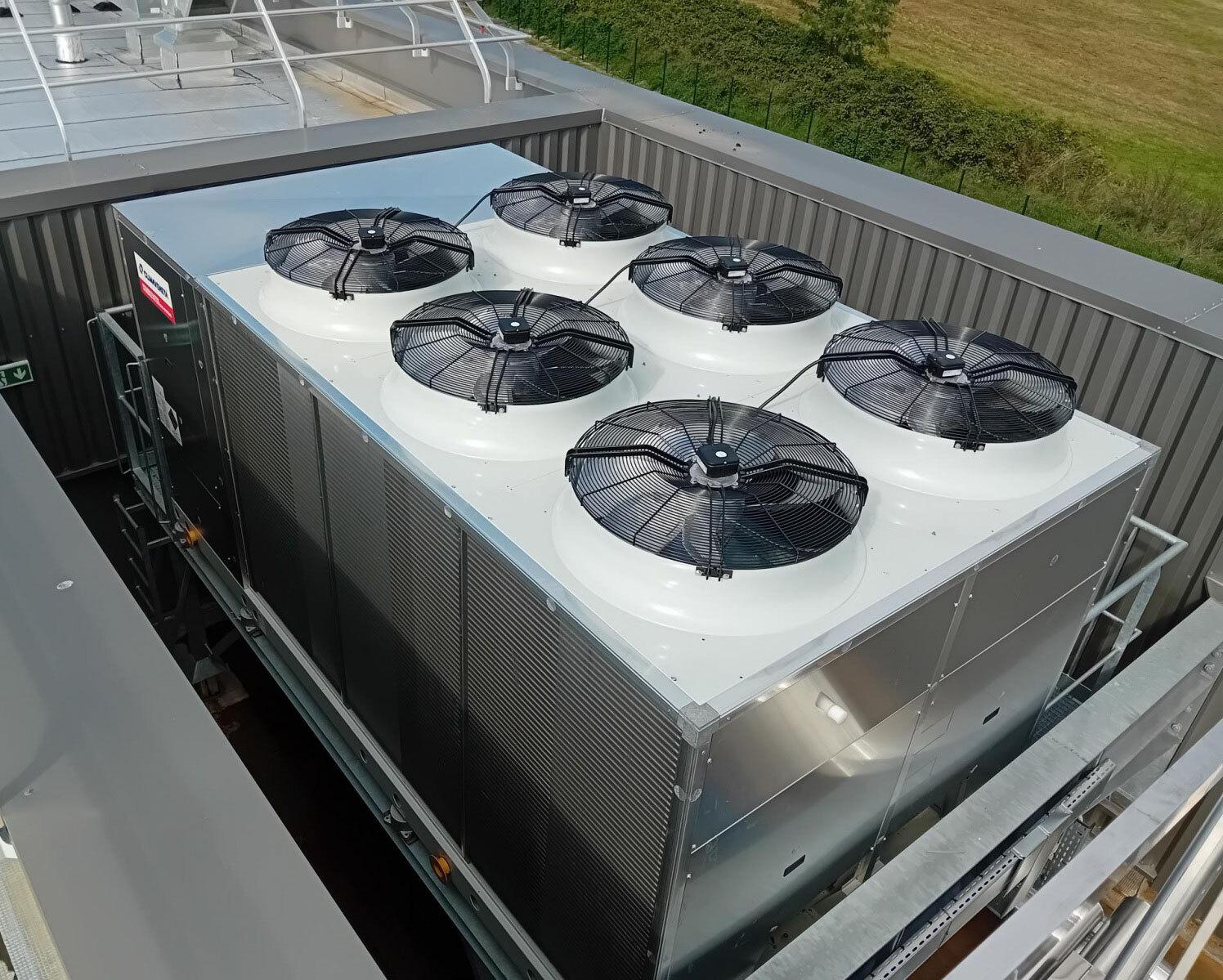 - Installation 2 PAC air/eau 205 kW chacune en terrase technique marque MITSUBISHI. Réseau