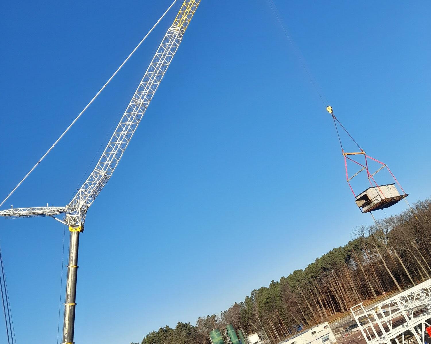 Grutage de l'ensemble à l'aide d'une grue 450 t (12 tonnes à 52m de portée)